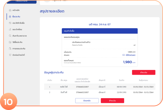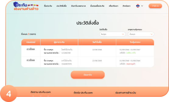 | กรมธรรม์ | ผู้เอาประกัน | วัน/เดือน/ปีเกิด | วันคุ้มครอง |